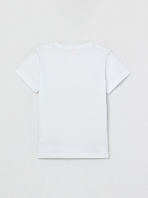 Футболка детская с коротким рукавом. Вырез горловины круглый, обработан притачной бейкой из рибаны с эластаном.