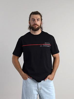 Футболка мужская с коротким рукавом. Вырез горловины круглый, обработан притачной бейкой из рибаны с эластаном.